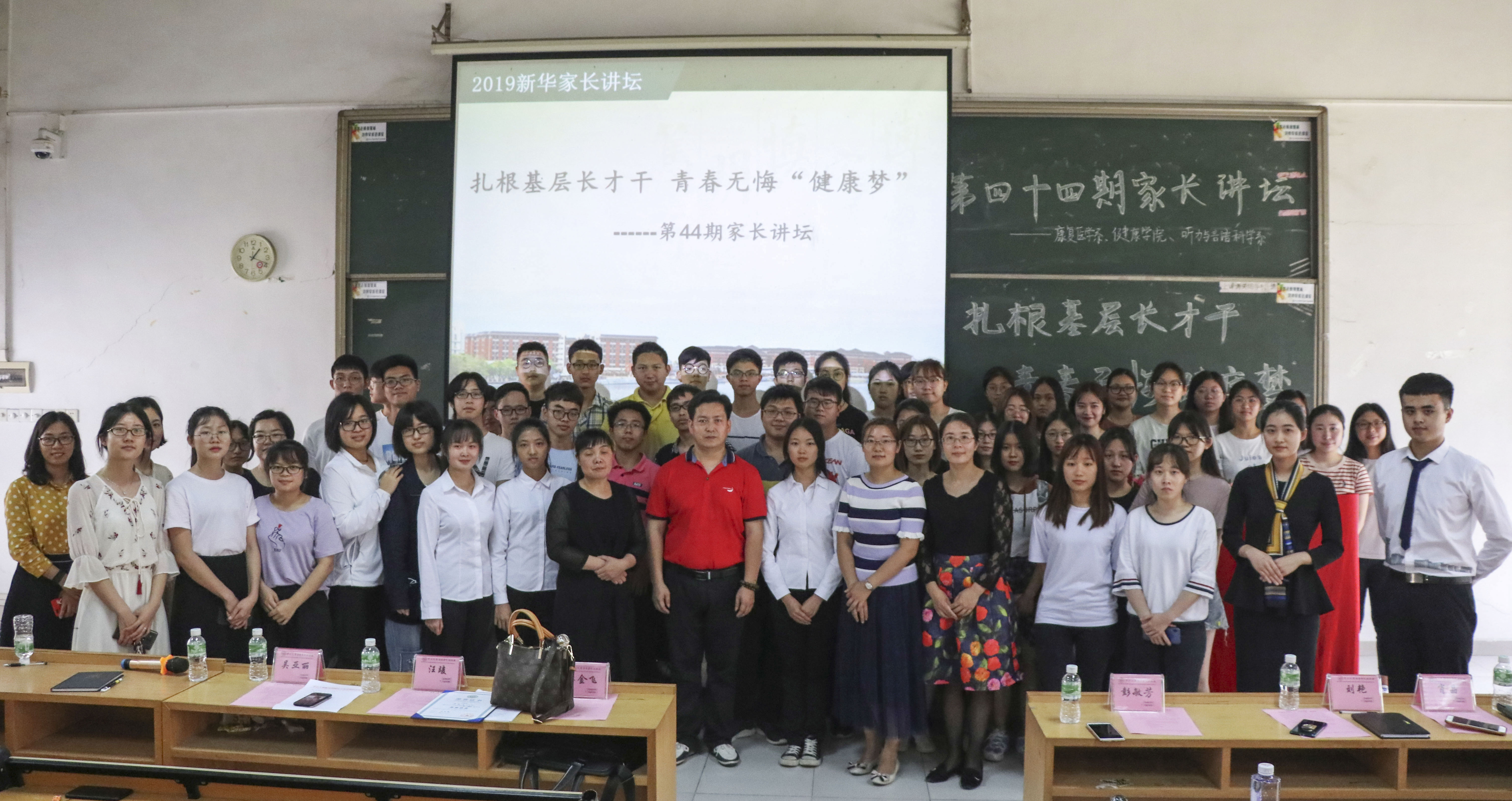 4月10日下午,中山大学新利18平台下载学院(以下简称“我校”)主办,我校学生处、康复医学系、健康学院、听力语言与科学系(以下简称“三系”)承办的第四十四期家长讲坛在广州校区教学楼D103举行。本次讲坛特邀2018级康复治疗学专业陈安琪、单嘉浚两位学生的家长彭敏芳女士和单金飞先生来校主讲,康复医学系辅导员吴亚丽老师主持讲坛。我校学生处副处长刘艳、医学科学技术学科党总支副书记肖晶、健康学院学生工作办公室主任汪竣、听力与言语科学系学生工作办公室副主任郑臻等教师代表及2018级三系学生代表参加讲坛。